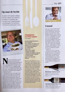 Umami geeft een mollig mondgevoel en net als zout versterkt umami de smaak van andere ingrediënten. Milde umami als in champignons is zeer wijnvriendelijk, het is hier eerder de room die grenzen stelt.